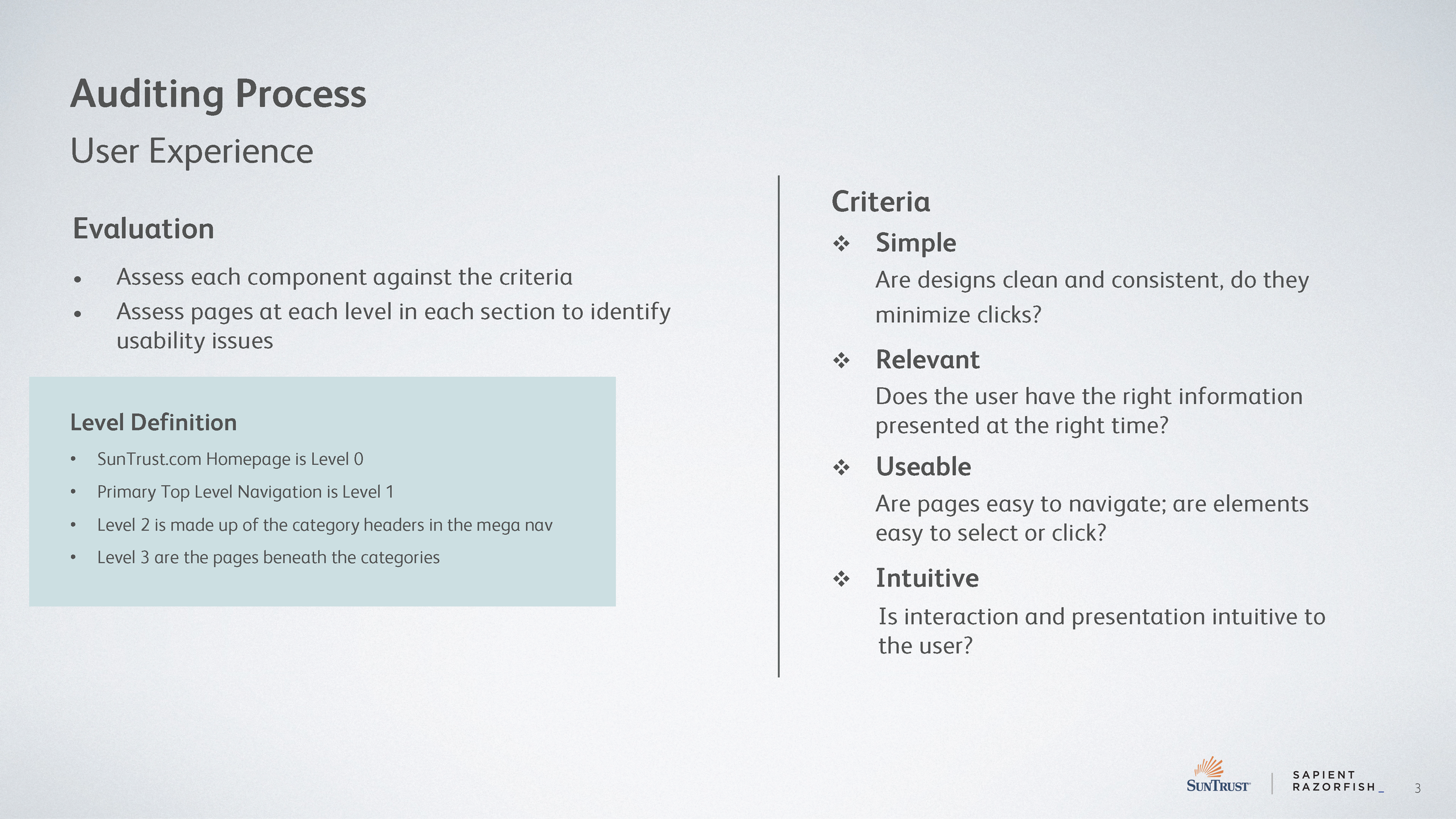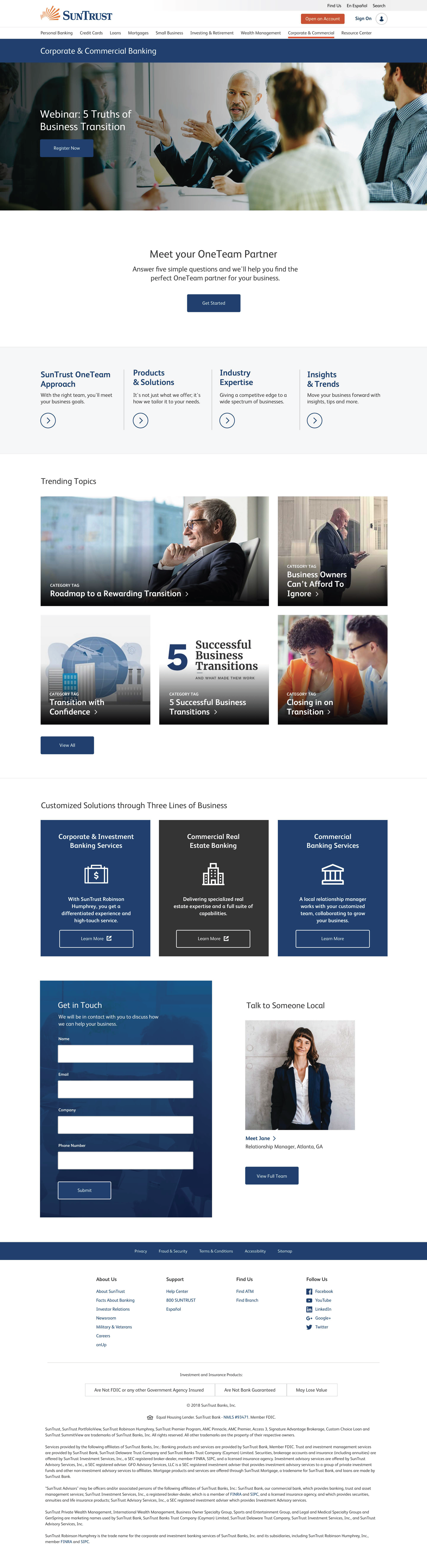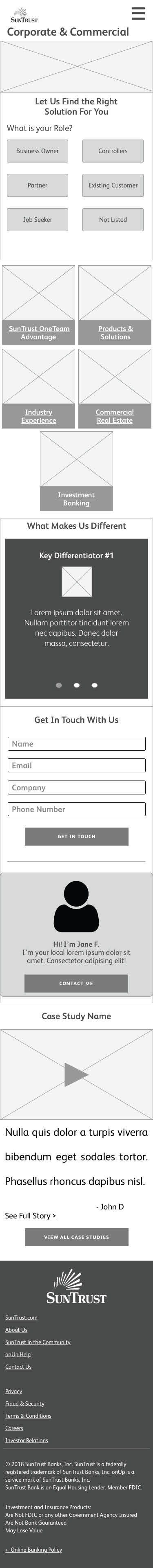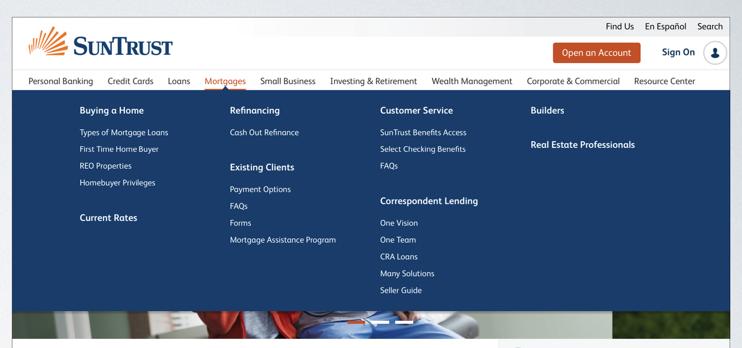 There were many steps and parts to redesigning the entire SunTrust website. The main goal was to have a consistent experience on all pages for users, no matter which part of the site they were visiting.