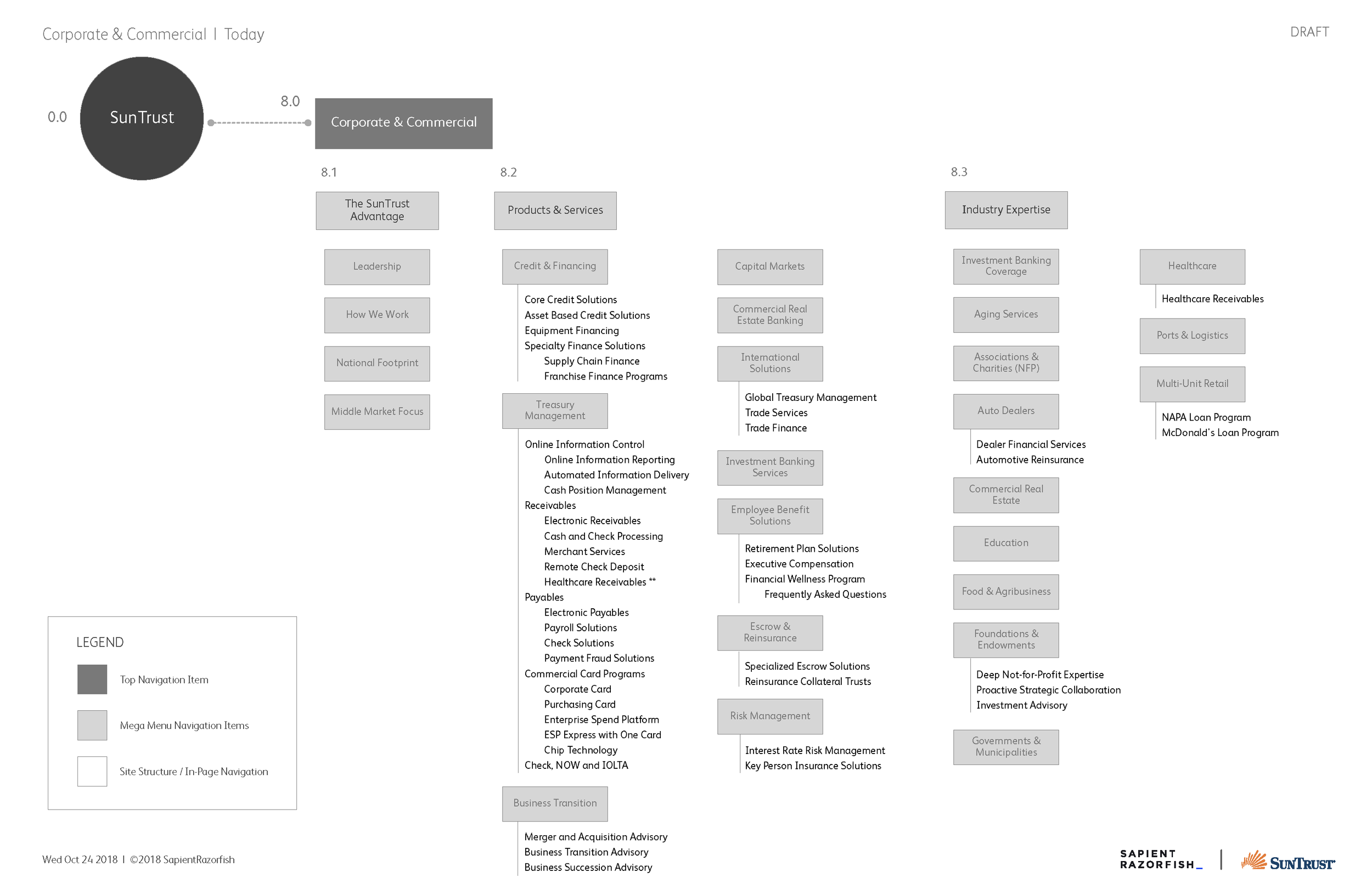 Part of my role on this project was to educate project managers and stakeholders at SunTrust what UX and IA are and what the roles can do. Some of the stakeholders had difficulty understanding the sitemap and it’s purpose so I created a more visually exciting version so they could see all the actual pages and explore in Miro how they were connected.